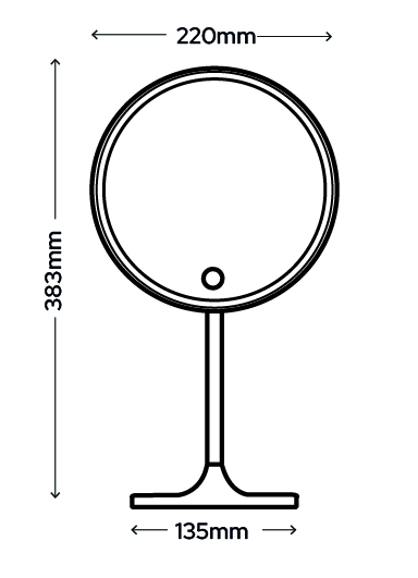 This stylish Titan mirror features an illuminated halo ring which is activated and dimmed at the touch of the built in button. The mirror also features a sensor, which turns the light off after 20 seconds if it senses no movement. The sensor stays activated for 15 minutes so will switch the light on again if it senses further movement. After this period it will enter a sleep state and will require re-activating via the button. It is rechargeable using a USB cable (included), and lasts for up to 2 hours when fully charged.